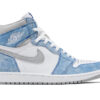 Blue/light grey/white leather Air Jordan 1 Retro High “Hyper Royal” sneakers from JORDAN featuring signature Air Jordan Wings logo, signature Swoosh logo detail, contrasting panel detail, round toe, front lace-up fastening, logo patch at the tongue, ankle-length and rubber sole.