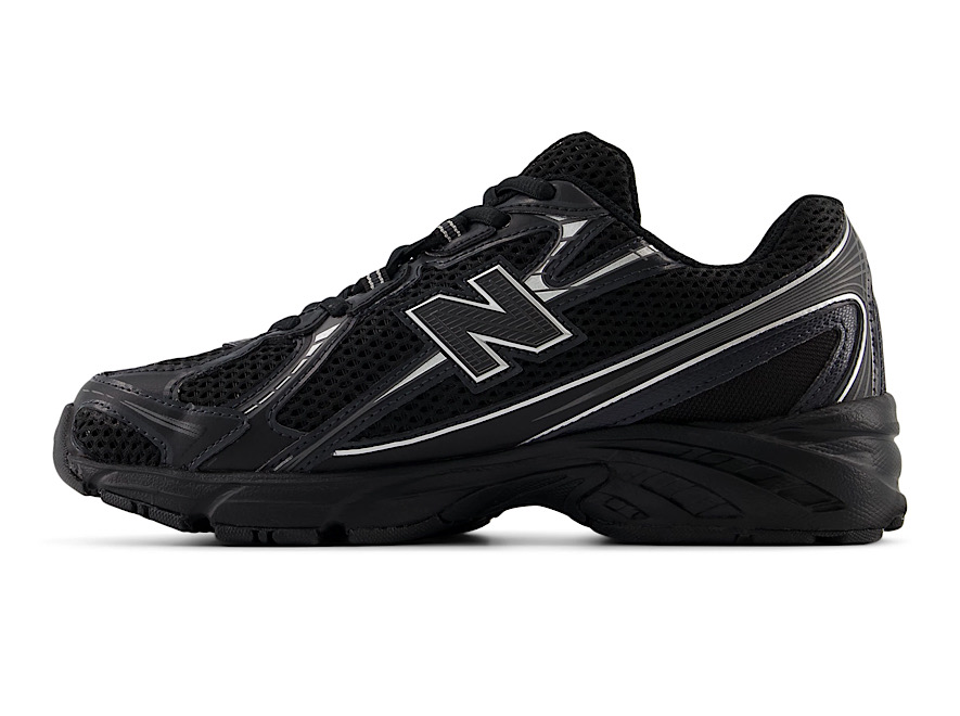 Sleek, sporty, and built for everyday movement. The New Balance 740v2 combines breathable mesh with layered synthetic overlays in a black, grey, and silver finish for a modern athletic look. Lightweight cushioning and a durable outsole deliver comfort and stability, making it ideal for daily wear and street-ready styling.