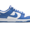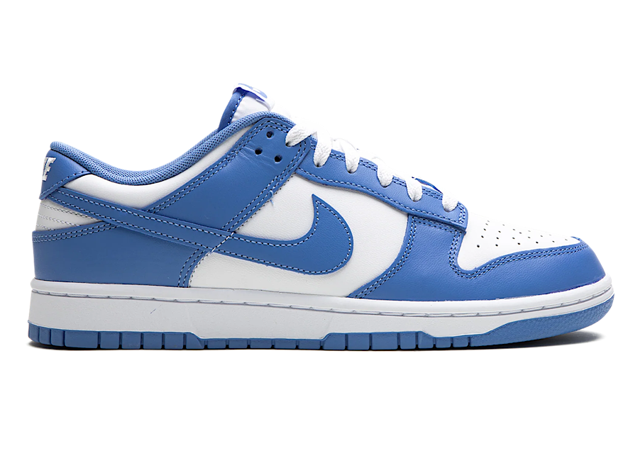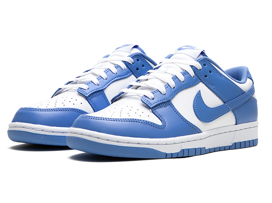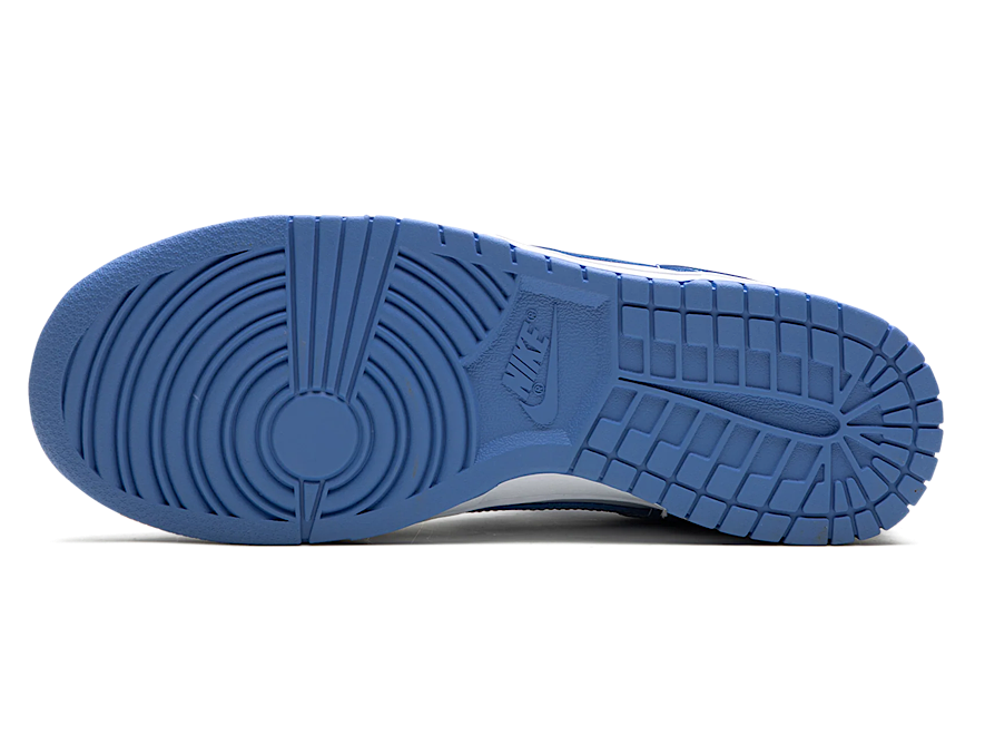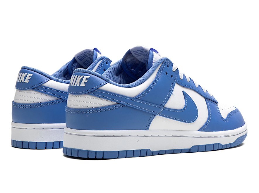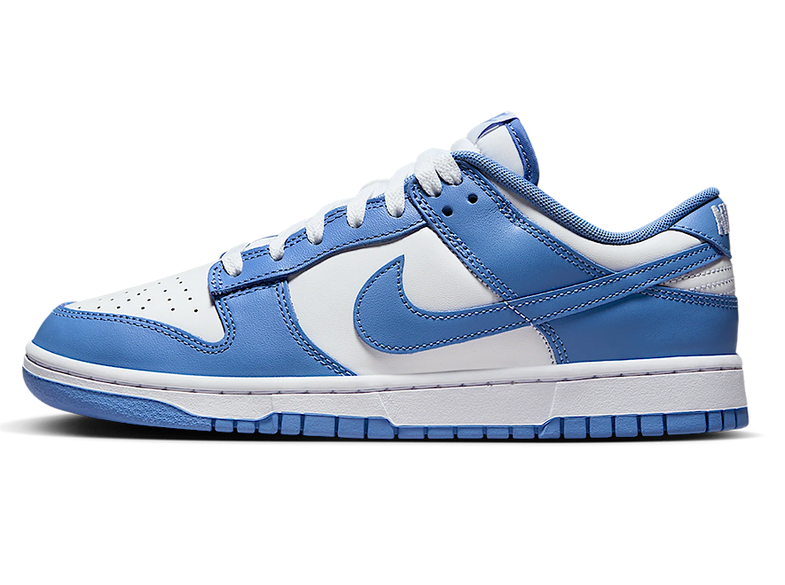 The Nike Dunk Low ‘Polar Blue’ features a crisp white base with steel blue overlays and a color-matched Swoosh. Heritage details include breathable perforations on the toe box and a breathable nylon tongue, topped with a woven Nike tag. Additional Nike branding appears on the back tab and sockliner. Reflecting the shoe’s ‘80s roots is a durable rubber cupsole, fitted with an interior polyurethane wedge for lightweight cushioning.