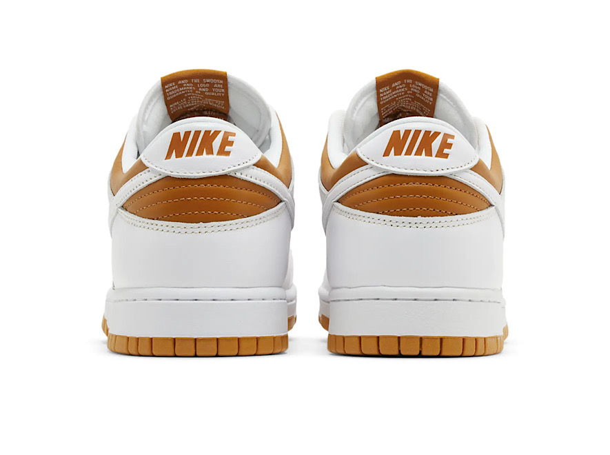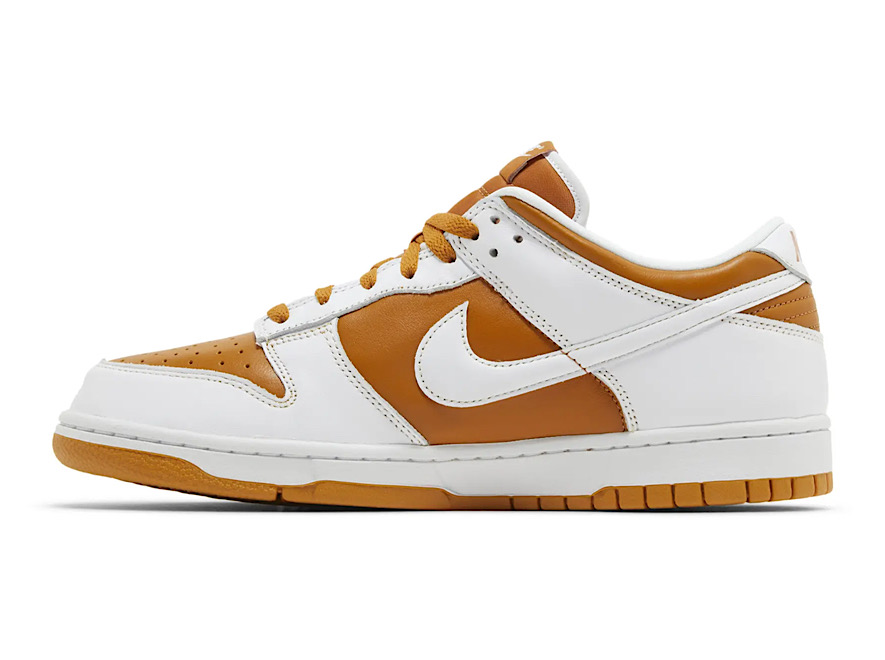 The low-top makes use of a smooth leather upper, featuring a dark tan base with contrasting white overlays and a colour-matched Swoosh.