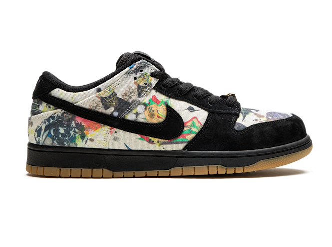 The Supreme x Nike SB Dunk Low “Rammellzee” is a collaboration by the revered streetwear brand on a colorway the skate shoe that features visual artist Rammellzee’s artwork.